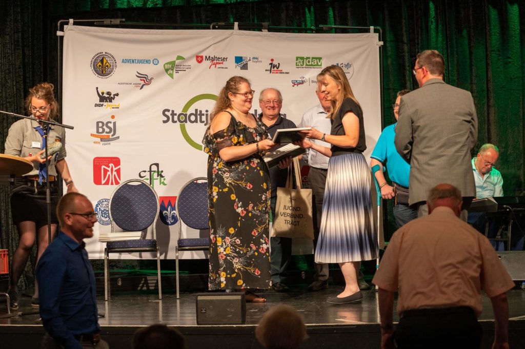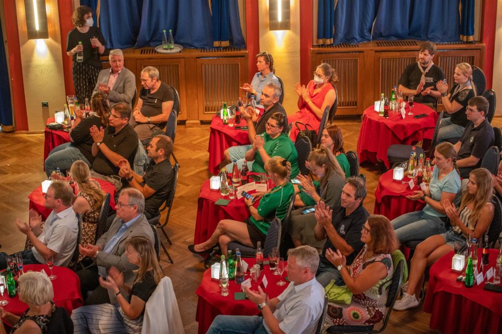 Über die gesamte Veranstaltung merkte man den Gästen an, dass sich viele gefreut haben, einander wieder zu sehen und sich über die gemeinsame Zeit im Jugendring auszutauschen. Die unterhaltsamen Grußworte haben auch wieder gezeigt, dass die meisten Politiker*innen, die anwesend waren, auch selbst schon lange eine Verbundenheit mit unserem Stadtjugendring haben und so manche Anekdote zu erzählen hatten. Unsere vielfältigen Jugendverbände erreichen eben viele Menschen in allen Stadtteilen unserer Kleeblattstadt. Und den Erfolg der Jugendring-Idee, verschiedenste Vereine zusammen zu bringen, konnte man über den ganzen Abend im Saal der Comödie miterleben.