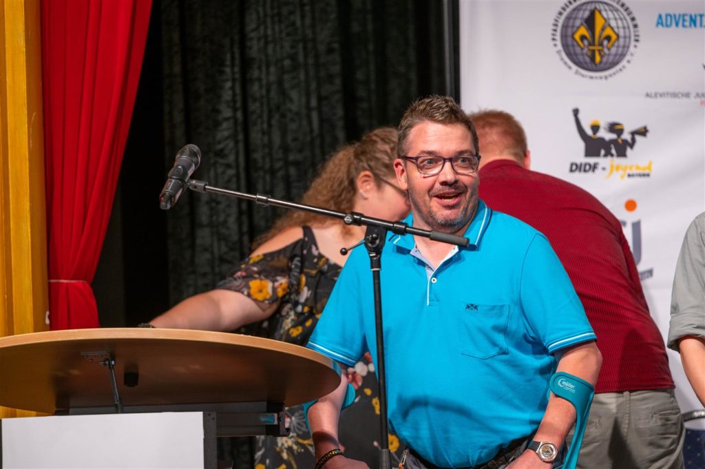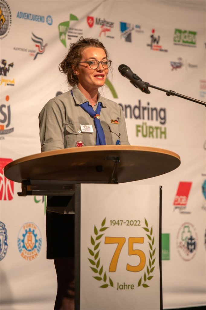 Im Anschluss an die Politik galt die Bühne dem Grußwort der Jugendringe. Christian Löbel, Vorsitzender des Bezirksjugendring Mittelfranken umriss die Bedeutung der heutigen Jugendverbandsarbeit.